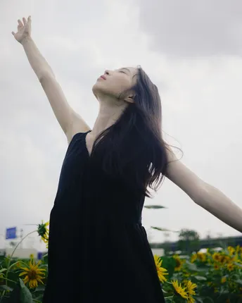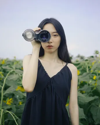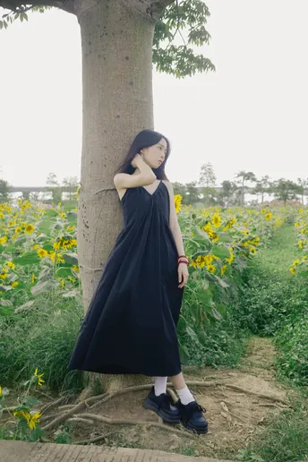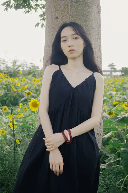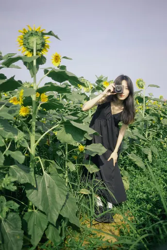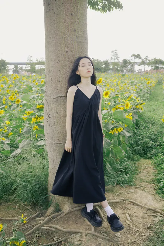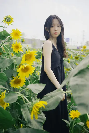 在向日葵花海邂逅日系清新🌼 黑色吊带裙与明媚花田碰撞 胶片质感晕染出夏日温柔 镜头里的每一瞬 都是青春该有的模样✨ 女孩与花 光与风 把夏天的故事 永远封存在这组胶片里📸