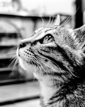 那天,跟朋友去吃饭。 菜没上来,它却轻轻一跃趴在了我的身边。 我问它是谁?是有主人的娇宠?还是一直独自一人的逍遥? 它没回答,却只是抬头看了一眼上面。 那只是房顶的灯,又不是天上的月,你为啥看的那么认真? 我凝视它眼里的光,但却怎么也理解不了它心中的江湖。 也好也好,那我就把你拍下来当做今次难得的缘分吧。