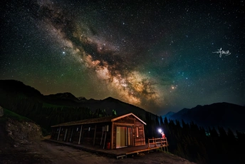雨后的新疆琼库什台星光闪烁,在大气辉光的的加持下,银河似乎变得有些绚烂。 天空:F1.8/20s/ISO3200,10张堆栈降噪; 地景:F1.8/20s/ISO6400,10张堆栈降噪。 设备:A7R+14GM