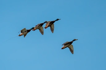 这队 “涡轮增鸭” ,身姿矫健,翅膀扇动似涡轮叶片,在蓝天引擎里,把自由轰鸣成风的呼啸。它们队列随性,却藏着默契,像未经调试、纯凭热爱组装的飞行机组,歪歪扭扭,却生命力满溢。 带头那只,绿头晃得张扬,翅膀拍得用力,尾羽拖出细线,像老飞机拖烟,把蓝天当跑道,要把平凡日子,拽向云端冒险。后面几只,或跟风展翅,或偷摸调整,姿态各异,却都追着前头那抹绿,像我们追着生活里忽明忽暗的光,磕磕绊绊,绝不离场。 看着它们,想起被规训的 “标准人生” :要整齐队列,要精准航线,要在划定空域里,飞出 “正确轨迹” 。可这群野鸭不管,它们以翅膀为桨,搅乱定式,用歪歪扭扭的飞行,宣告 “野生秩序”—— 自由,从不是完美规划,而是敢在蓝天撒野,让风卷着羽毛,把 “应该怎样” 撕成天边云絮。 “涡轮增鸭” 越飞越远,蓝天却留了痕迹。往后再看云淡风轻,会想起这股子 “野生劲儿”—— 人生何必都装精密涡轮?偶尔当只 “增鸭” ,让翅膀乱扑,让轨迹荒唐,把生活的引擎,轰出属于自己的、轰隆隆的自由声响。毕竟,最动人的飞行,从不是沿直线抵达,而是像这群野鸭,把蓝天当画布,用翅膀作笔,歪歪扭扭,却实实在在。