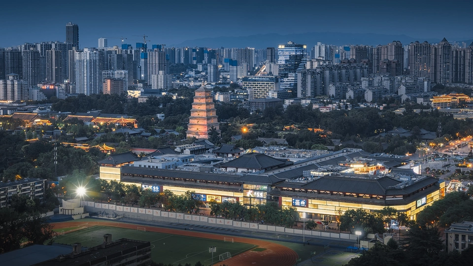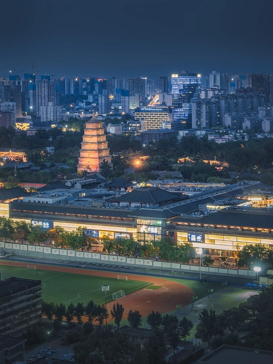 霓虹灯光与古塔灯火交相辉映,古建筑的厚重 与现代都市的繁华完美交融