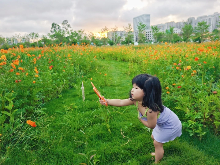脚尖划过青草,笑声散在风里🌿 童年的快乐,就是一片无边的草地,和一颗敢奔跑的心❤️