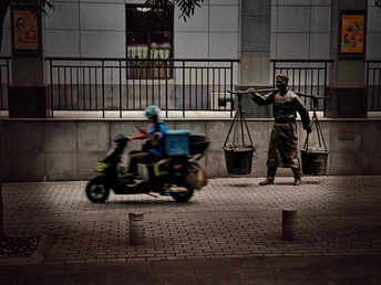 2025年6月11日拍摄于湖北省武汉市武昌区粮道街。新旧对比相互呼应。