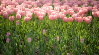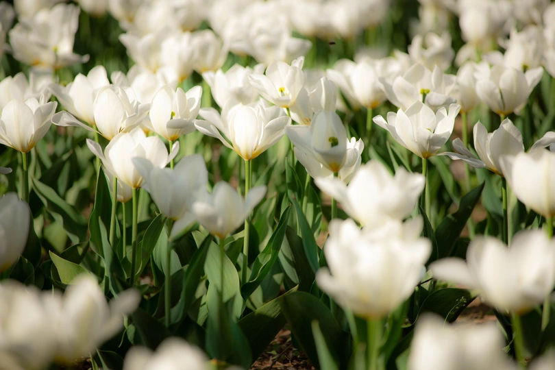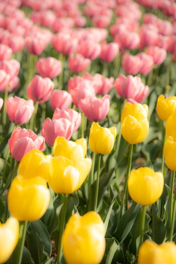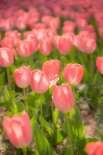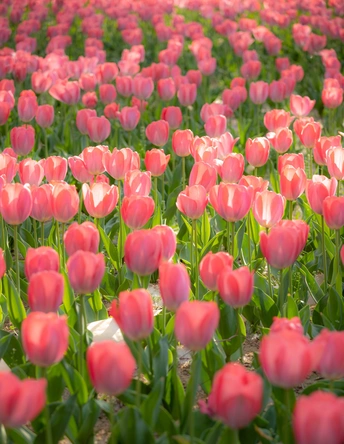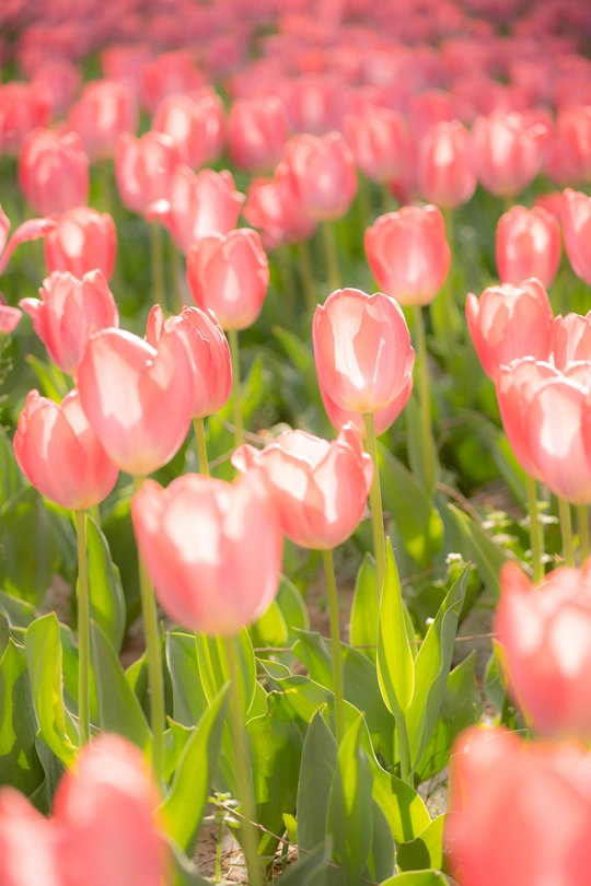 镜头捕捉的这一刻,郁金香在晨光中苏醒。花瓣边缘镀上金边,像是春天写的朦胧诗。风很轻,只敢悄悄掀起一片绸缎般的紫,而阳光大胆地闯进花心,把每一丝纹理都照得透亮。这是自然最奢侈的馈赠——无需雕琢的美,带着露水的清澈,和大地最原始的温柔。我想,或许这就是永恒的模样。