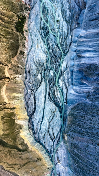 安集海大峡谷谷底的河流犹如大地的动脉一般,大自然鬼斧神工。
