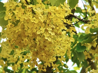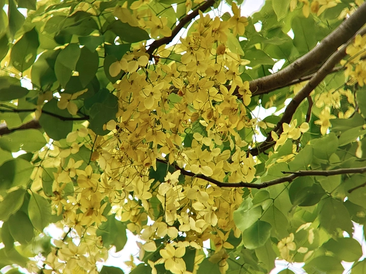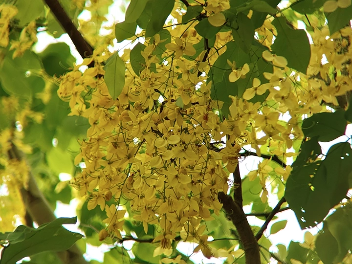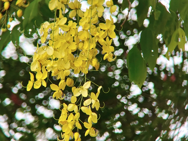 在暖风中,腊肠树宛如优雅舞者。羽状复叶随风轻摇,似灵动裙摆。暮春至夏,满树金黄花朵如繁星倾洒,明艳灿烂。花落后,长长的荚果垂挂枝头,形似腊肠,颇为奇特。它静静伫立,既装点了风景,又带来别致野趣,让路过之人皆为这自然之美而沉醉。