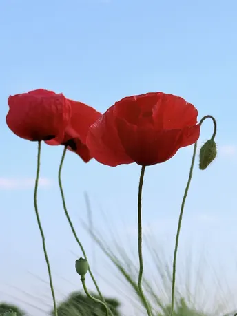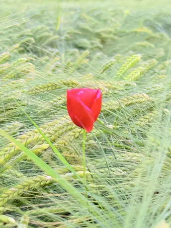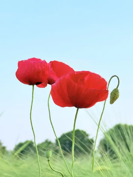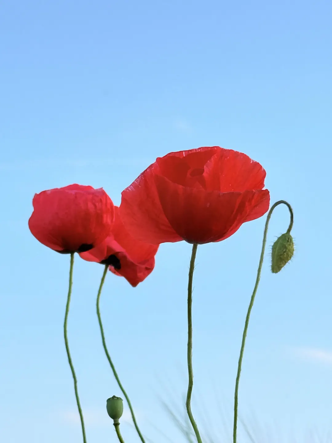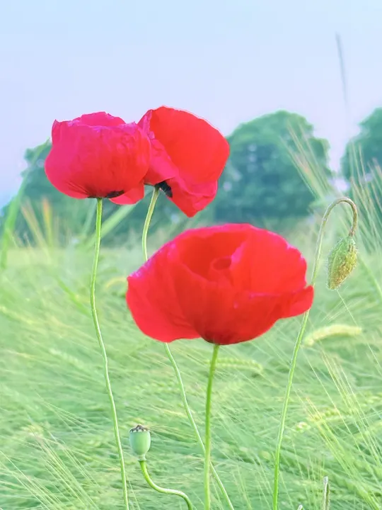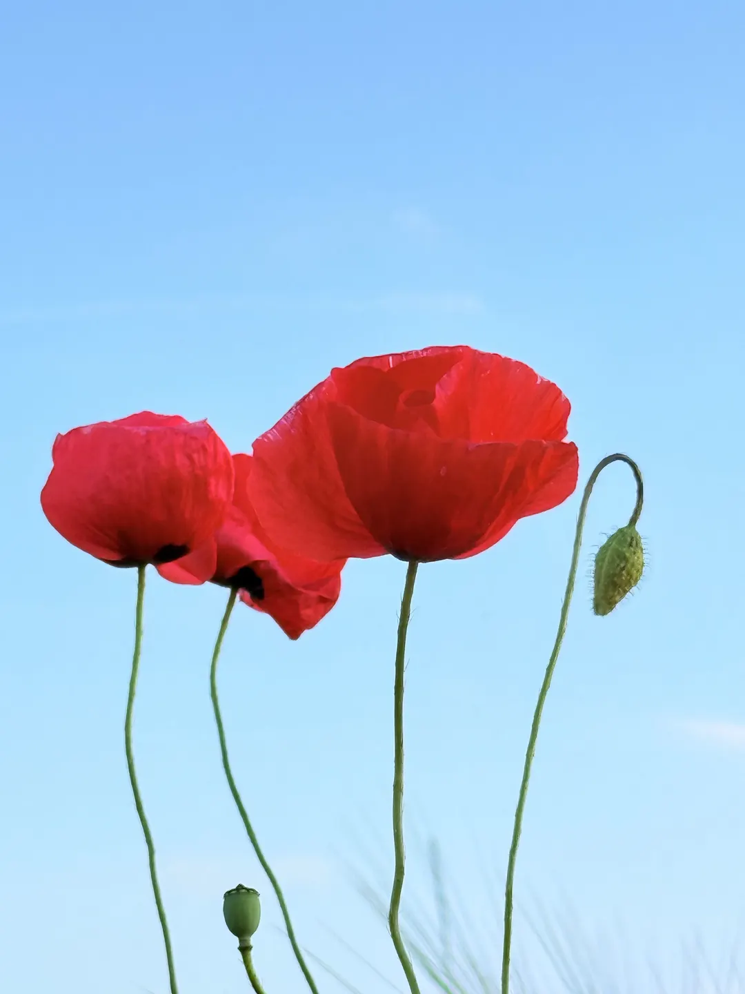 虞美人盛开时,宛如舞女翩翩起舞。那一抹绚丽的红,轻盈地在风中摇曳,如丝绸裙摆翻飞,每一瓣花瓣都是舞动的指尖。阳光洒下,她微颔低眉,似含羞初见的佳人,又在微风中展露笑颜。她不语,却胜万语,以舞姿诉说春日的柔情与自由的灵魂。她美得不张扬,却夺目动人,仿佛天地间最灵动的一抹红,是大地献上的一支舞、一首诗。