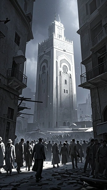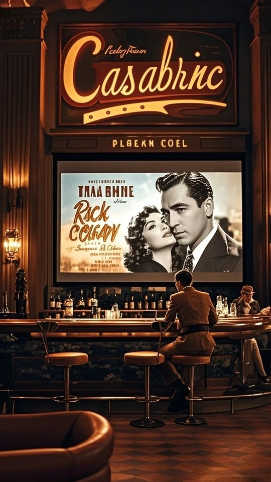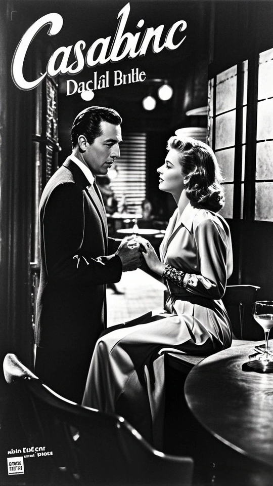 黑胶唱片在灰度里转动 霓虹把影子钉在吧台 里克的威士忌杯底 沉着整个撒哈拉的沙 她走进来的时刻 钢琴突然哑成断胶片 盖世太保的影子在琴键上爬行 而她睫毛上的雪 正落进1941年的咖啡 旧唱针划开记忆的疤痕 枪口抵着旧胶片的划痕 维克多的护照夹着黄昏 签证像未拆封的子弹 在烛火里发烫 “世界上有太多酒馆”—— 他把自己调成背景音 让钢琴吞下所有未出口的和弦 当飞机划破云层时 所有人都在黑白里流泪 只有吧台的木纹 还在生长新的年轮