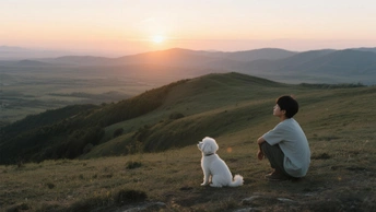 山坡上,男孩和狗子一直望着远方...
