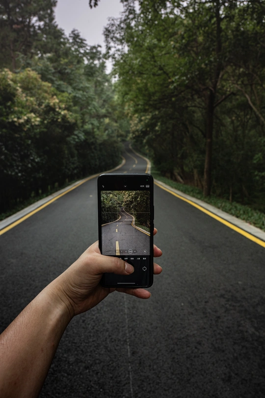 紫金山里徒步偶遇a弯,拿出手机当前景再用相机拍一张