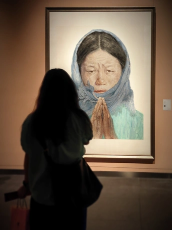 女孩的衣服颜色跟画中人物颜色一样,一时感觉像在照镜子