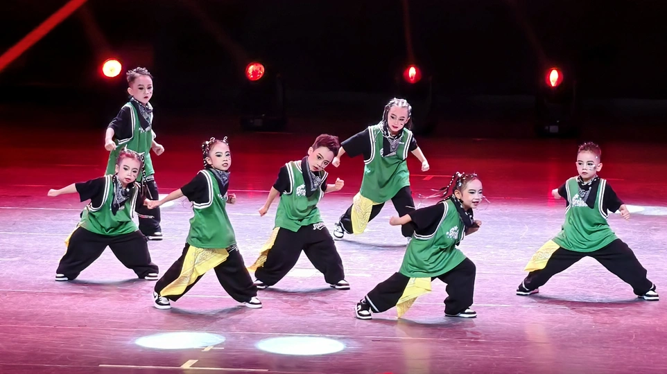 舞台上,这群小舞者光芒万丈✨ 绿衣黑裤,带着朝气与力量💥 每一个动作,都是努力与热爱的绽放,这是属于童年的精彩,是青春在舞蹈里的滚烫🔥 为他们的热情和坚持点赞,未来也继续这样闪闪发光呀~