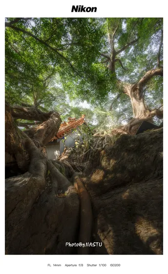 拍摄于霞浦某个小渔村中的百年老树,粗壮的树根包裹着老屋,一束光洒向树荫里,这是时光的影子。