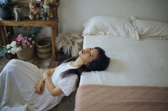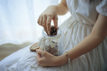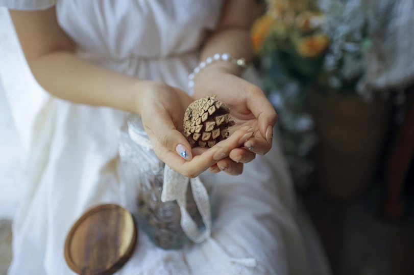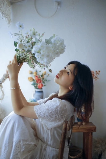在洒满柔光的房间,白纱裙与花影缠绵。把松果藏进玻璃罐,让花语漫过指尖。倚着窗,任思绪随光影蔓延,这独处的时光,是生活写给自己的散文诗,静谧又温柔。