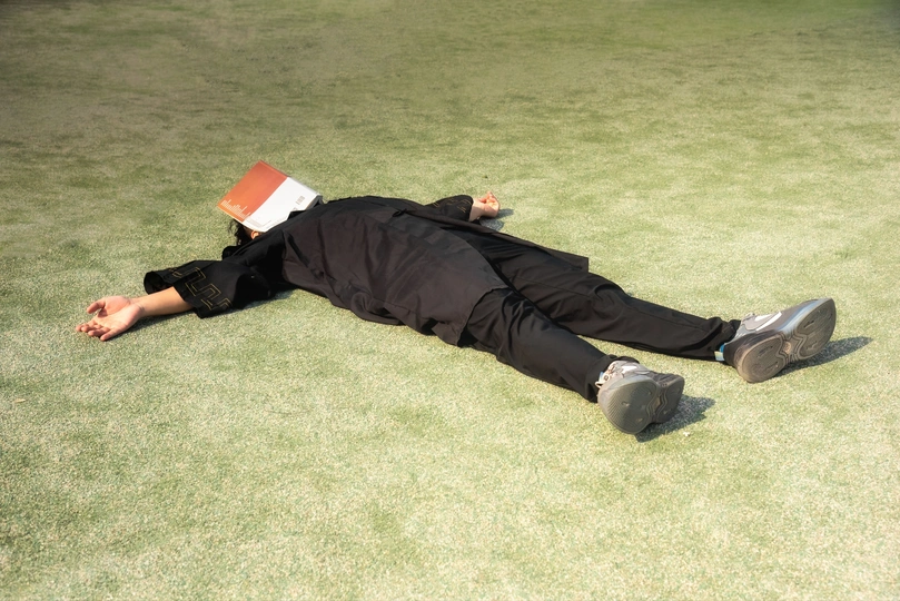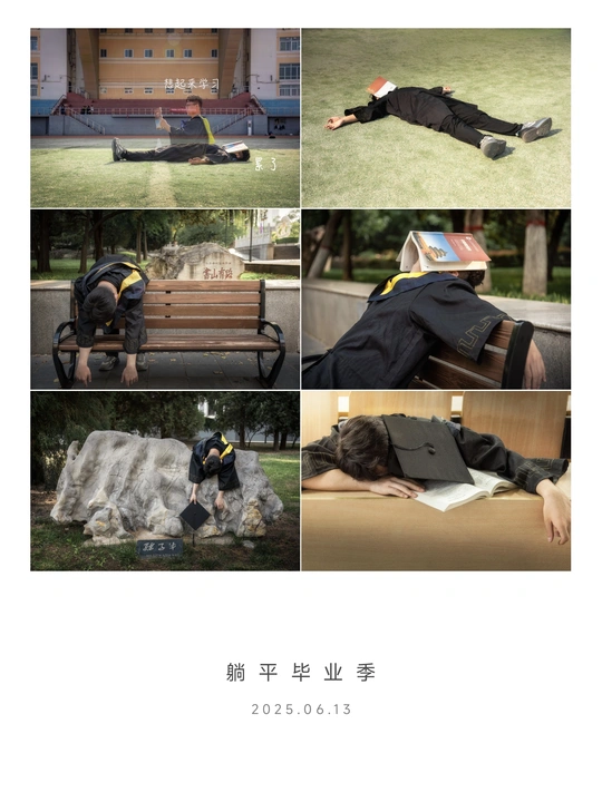 我们总被塞进“人生进度条”的模板里,而那些被定义为 躺平的时刻,或许才是灵魂的呼吸。窝在宿舍里打一下午 游戏,游荡在外拍一天风景,躺在荷叶坪上看一晚上星星 银河,骑车十几公里感受路边的匆匆。所谓成长,不是把 自己焊在赛道上,而是一步步经历那些不期而遇的美好。 毕业论文致谢页写满,不如此刻敬大家一杯柠檬水——敬 熬夜改图的倔强,敬上课摸鱼的快乐,敬翘课睡觉的悠 闲!未来嘛,管它是卷成麻花还是躺平看云,咱毕业主打 一个摆烂,后会有期啊各位!