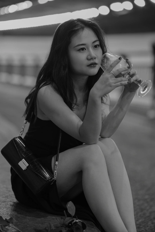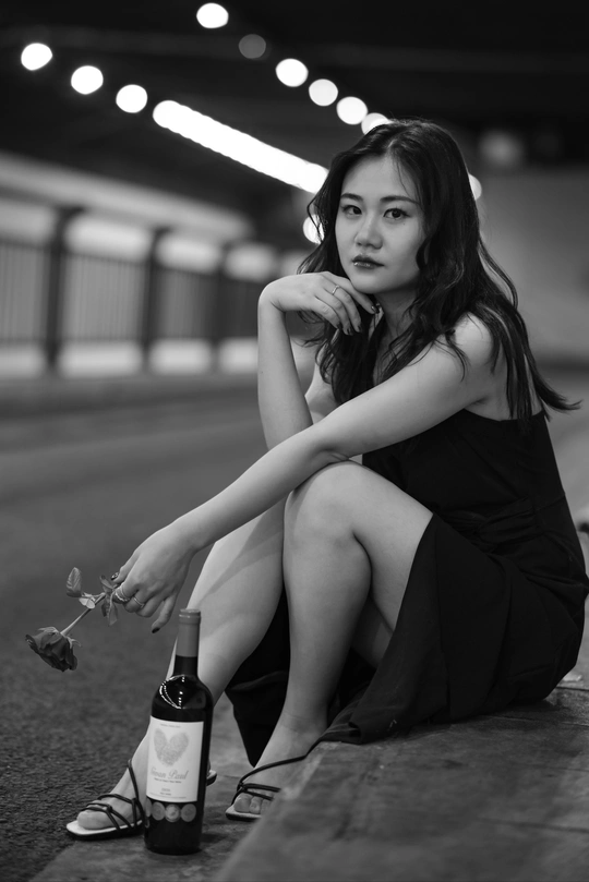 ——当玫瑰与车灯开始夜谈🥃 你坐在隧道的呼吸带上 黑裙摆接住游荡的光斑✨ 玫瑰瓣是八点零七分的引擎 每一片都落向银河的反方向 车流在身后织成丝绸 红酒瓶倾倒的弧度里🍷 藏着未开封的城市情书 栏杆在背后生长成荆棘王座 你回望时 风正数着 所有迷路人的心跳频率💓
