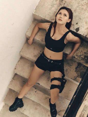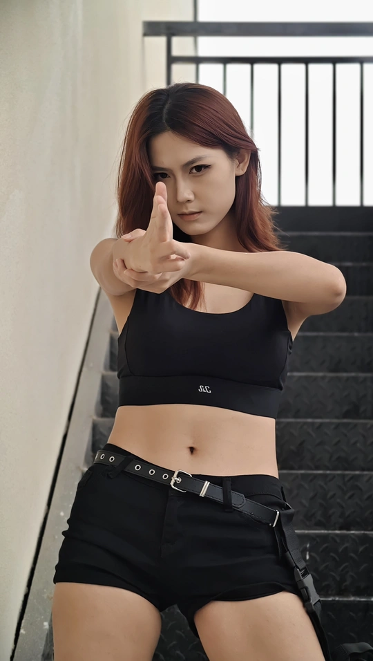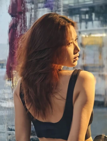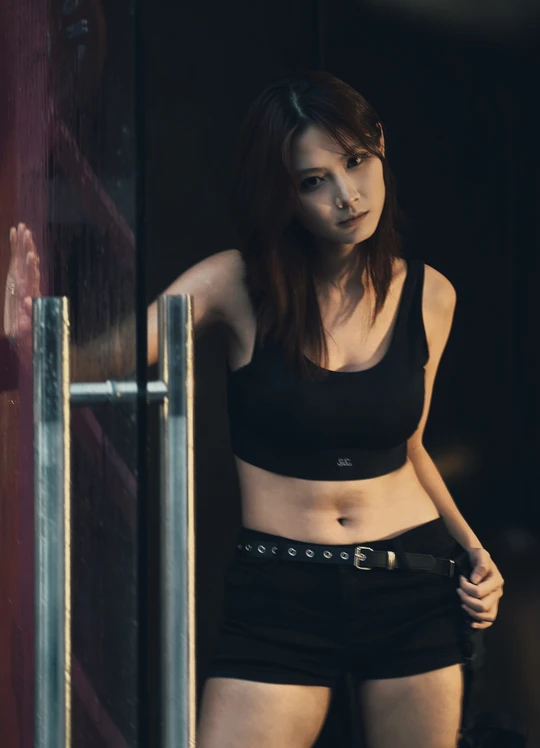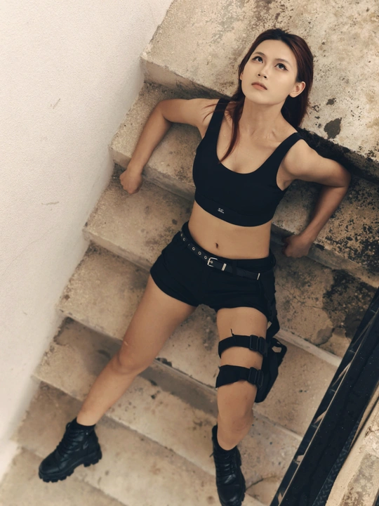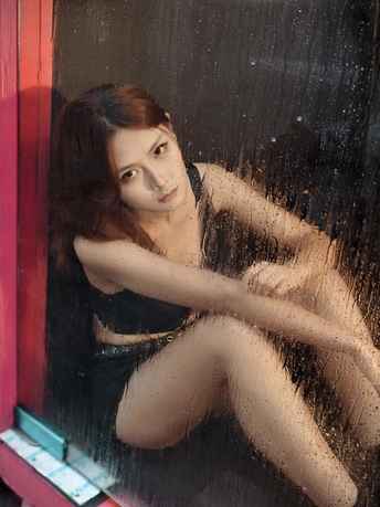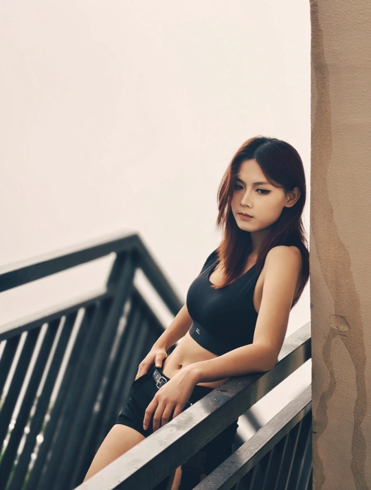 在明暗交错的空间里,雨天为场景晕染独特氛围,雨滴滑落窗沿,打湿视线边缘。黑色运动装勾勒出利落线条,倚窗听雨、凭栏望雨、立于阶梯踏雨,或沉静凝视雨幕,或随性摆姿迎雨,每一个画面,都是自我与环境借雨天的对话,用肢体书写不羁与洒脱,把沾雨的日常角落,变成专属时尚舞台 。