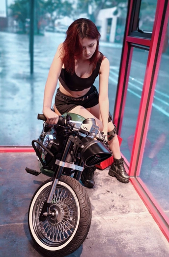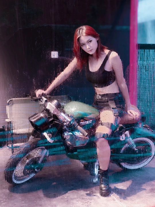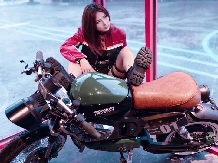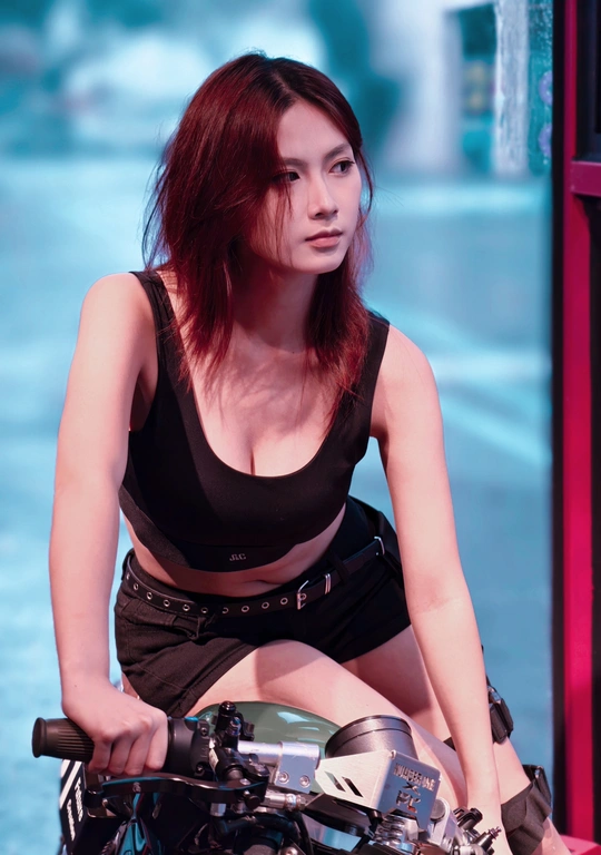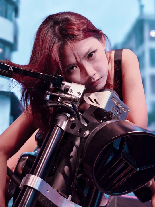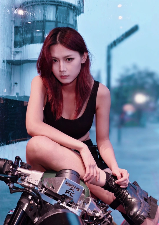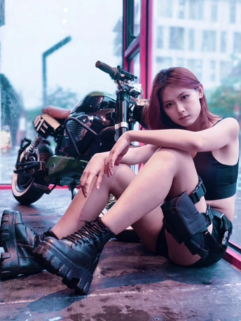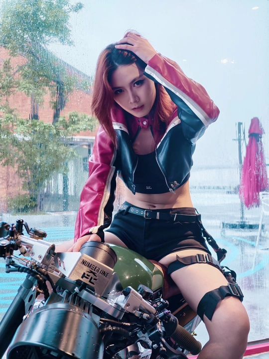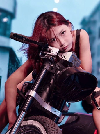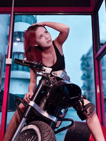 镜头里,她与机车共舞,红黑配色碰撞出不羁张力,发丝、机械、姿态交织,似在公路诗章里,书写灵魂对旷野的奔赴。每一张定格,都是机械硬朗与女性柔美边界的探索,把自由不羁,锁进光影,让观看者也忍不住向往,跨上机车,追风而去 。