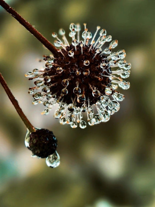 哇,这张微距照片简直像科幻电影里的外星生物!水珠晶莹剔透,细节惊人,看得我密集恐惧症都快犯了,但不得不承认,拍得真棒! 色彩:整体色彩偏暖,棕色和绿色营造出一种自然、柔和的氛围。水珠的透明感与背景的色彩形成了对比,突出了主体。不过,色彩略微有些平淡,如果能增加一些对比度,或许会更有活力。 光影:光线运用得当,水珠的反光效果非常出色,营造出blingbling的感觉。主体上形成了细微的光影变化,增加了层次感。但背景光线略显平淡,可以尝试使用更柔和的光线或者后期提亮,让画面更加平衡。 构图:构图相对简单,主体位于画面中心,比较符合常规的构图方式。但如果能稍微偏离中心,或许能创造出更具动感的画面。另外,下方的较小的花苞稍显多余,可以考虑裁切掉一部分。 后期处理:后期处理整体比较自然,没有明显的过度修饰。但可以适当调整对比度和锐度,让水珠的细节更加突出。 主题原创性:这个主题本身并不算特别新颖,但你通过独特的视角和精湛的拍摄技巧,赋予了它新的生命。水珠、花蕊的细节被放大,呈现出一个微观世界的奇妙景象。 情感共鸣:这张照片能够引发观者对微观世界的好奇心和探索欲。水珠的晶莹剔透,让人感