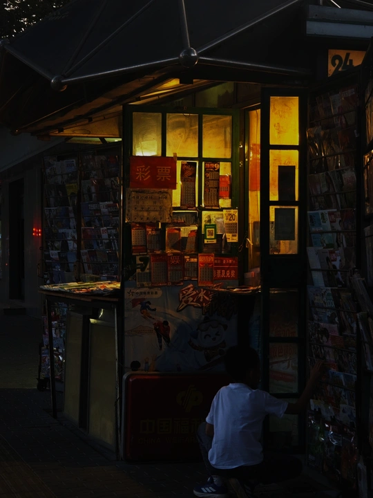傍晚的闷热空气让人闻见夏天,老旧的报刊亭和小孩让人看见夏天。