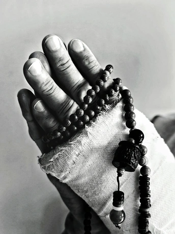 石膏的冷硬与佛珠的温润在画面中无声碰撞,受伤的手掌虽被禁锢于白色的外壳之下,却仍虔诚地握住那串承载着信仰的念珠。指尖轻捻的动作,似在诉说伤痛无法阻挡内心对宁静与希望的追寻。这一帧影像,定格的不仅是肢体的坚韧,更是灵魂在困顿中依然保持向上的力量,诠释着伤痛与信仰交织时,那份超越肉体束缚的精神光芒。
