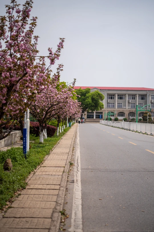 晚樱把粉云缀在枝头, 紫藤用紫瀑缠绕时光, 石竹燃烧着玫红火焰, 二月兰漫成浅紫星芒。 校园的路, 是繁花铺就的诗行, 建筑在远处静默, 看花朵们, 把春日的调色盘, 泼洒成温柔的絮语, 每瓣绽放, 都在诉说 —— 这是自然与青春的共鸣, 让校园的时光, 浸满花香与希望 。
