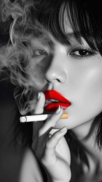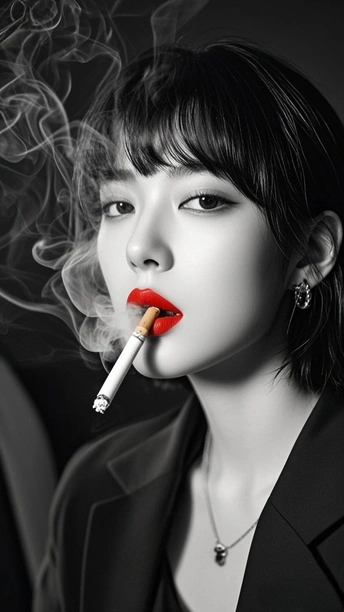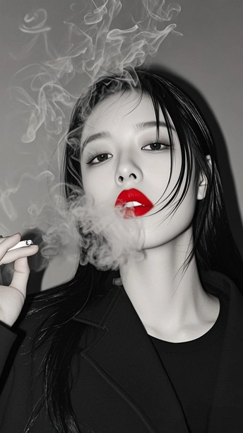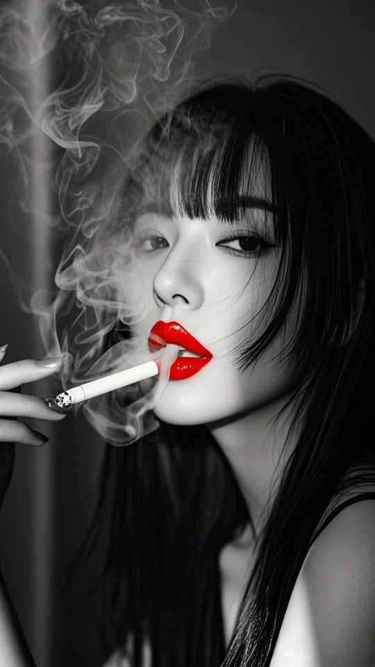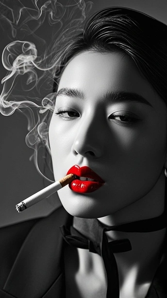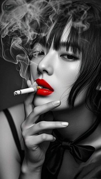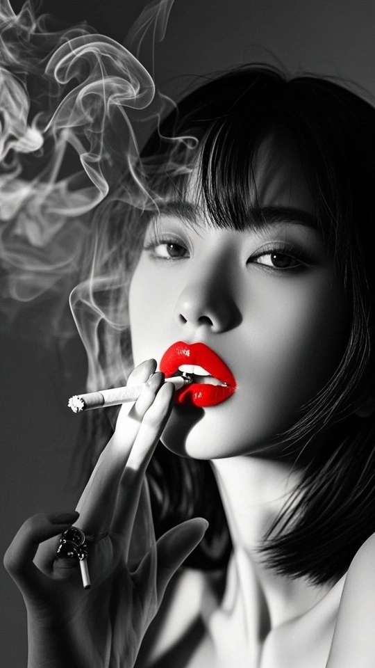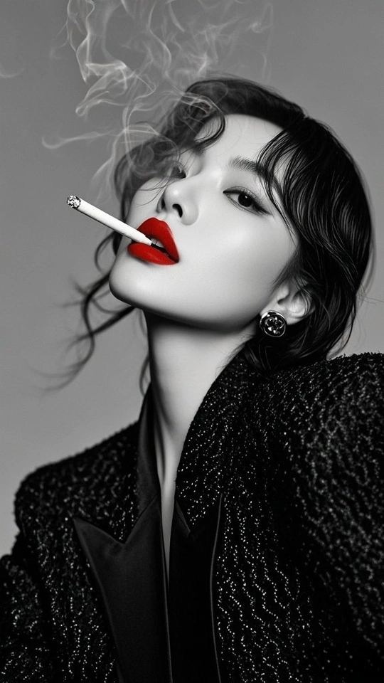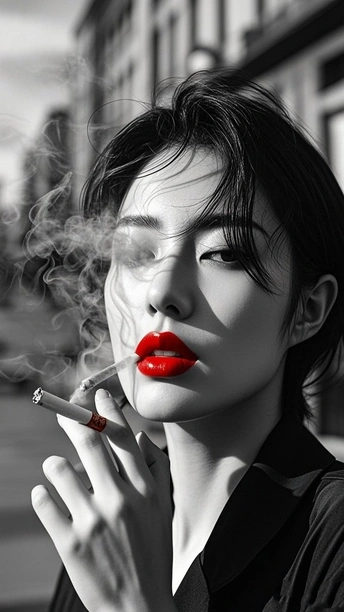 在黑白的城 红唇是燃烧的星 点燃两支烟 一支喂给沉默 一支吐向风 发丝纠缠光影 指尖掐着晨昏 每缕烟的褶皱里 都藏着 未说的 疼 街道在身后暗哑 影子与灵魂对坐 而那抹红 是喧嚣里 倔强的 灯