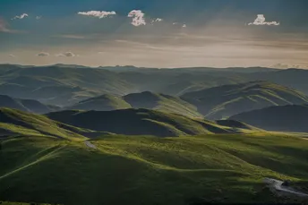 “青溟”是藏青山脉与天际线交融,“引丝”是小路如银线牵引视线通往远方,当我身处雅拉雪山半山腰,回头远眺,用长焦拍下了这幅“青溟引丝”
