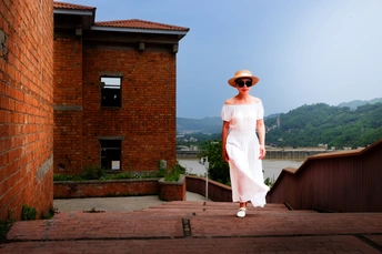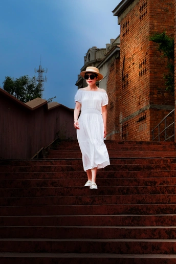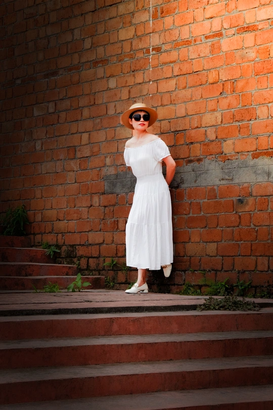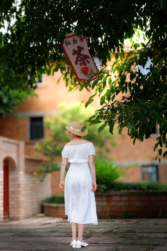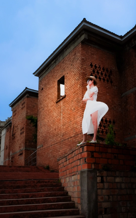 旧砖墙的斑驳,衬着白裙的纯净,像时光在静谧里,讲一段不慌不忙的故事,每一缕光,都在为这份从容添彩 。
