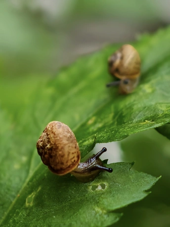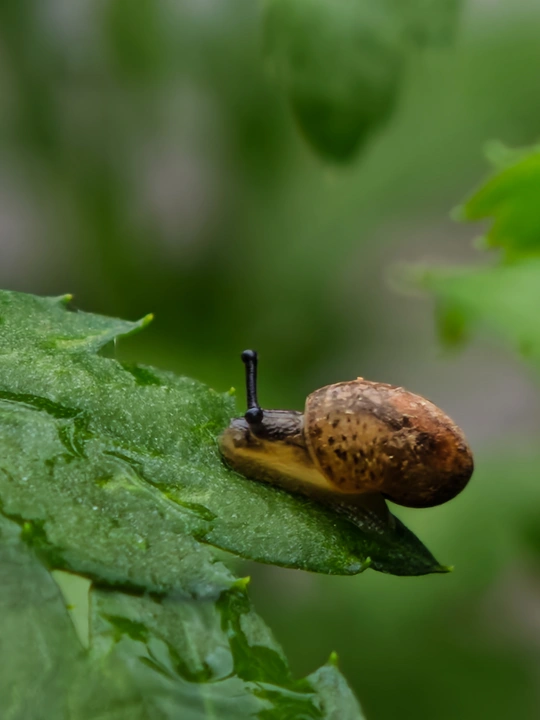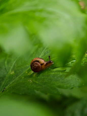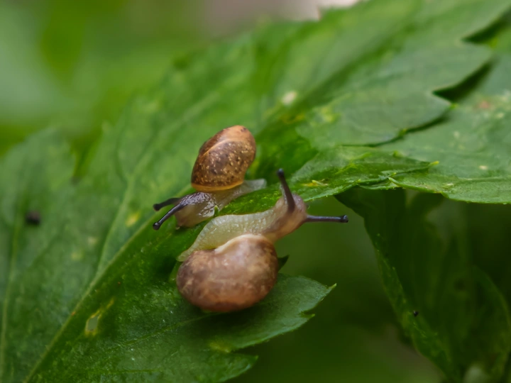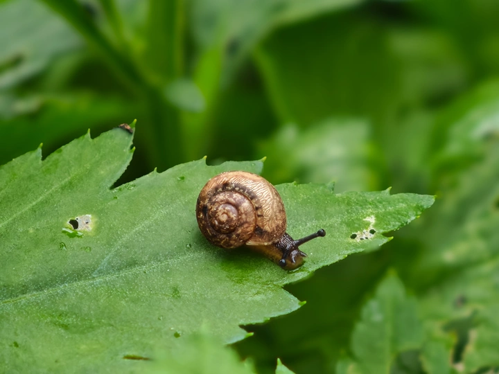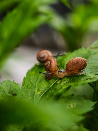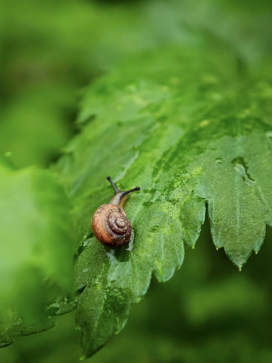 这是一组展现蜗牛在绿叶间活动的摄影作品。不同姿态的蜗牛,或独行、或相伴,在翠绿叶片构成的微小天地里,呈现出自然的灵动与静谧,仿佛是蜗牛们专属的生活剧场,传递出慢节奏的生机与趣味 。