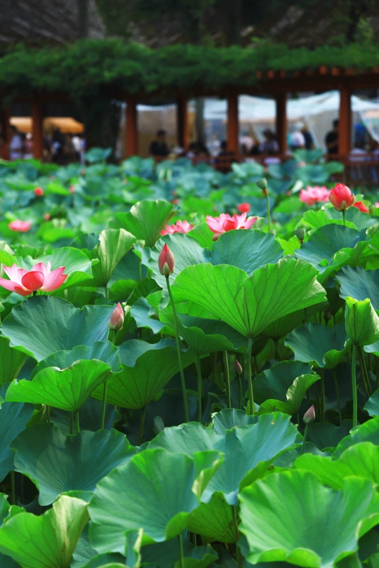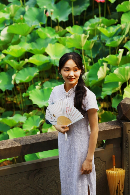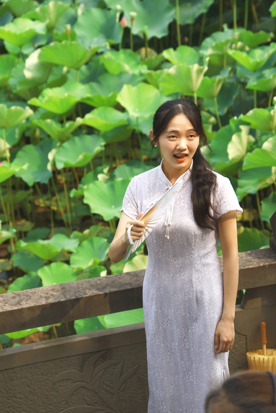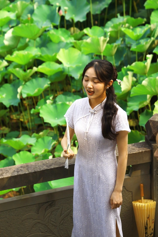 在荷塘,偶遇美如天仙的少女,还以为是荷花幻化成少女呢。