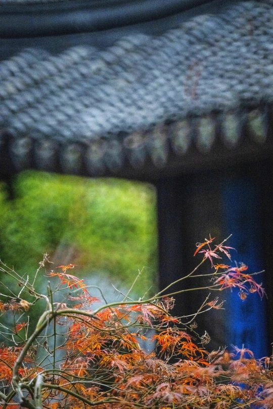 那天黄昏,站在石階上,望著南廂房紅的燈籠和屋頂藍的瓦棱,沒來由地想到講經,想到辯理,想到推杯換盞,想到不問蒼生問鬼神,此時,檐前的紅葉開得正好。