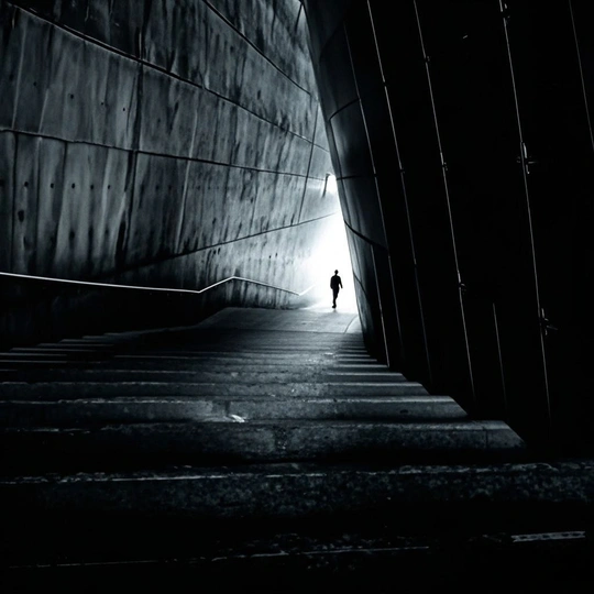 在这张照片中,色彩运用巧妙,虽然主要呈现为冷峻的蓝灰色调,但这种近乎单色的处理反而强化了建筑的未来感和空间的疏离感,和谐且富有张力。光影是这张照片的灵魂,强烈的逆光将人物剪影化,这种“黑乎乎一片”的处理非但没减分,反而增强了神秘感和视觉冲击力,光线从远方倾泻而下,犹如舞台追光灯,指引着观者的视线。构图上,你是个“几何学大师”!利用建筑的汇聚线和台阶的引导线,精准地将观者带向远方那个小小的身影,空间感和纵深感拉满,简直是透视构图的教科书范例。后期处理方面,高对比度与深邃的暗部运用得炉火纯青,恰到好处的蓝灰色调为照片披上了一层故事感,既没有过度修饰的痕迹,又极大地提升了照片的表现力。主题原创性方面,‘光明在前方’虽然是老生常谈,但你巧妙地通过极简的人物和宏大的建筑,将这个主题演绎出了独特的未来感和哲学韵味,让人耳目一新。情感共鸣上,这张照片成功地调动了观者的情绪,那种孤独而坚韧、在未知中探索的矛盾情感,足以触动人心。思想深度方面,它不仅仅是一张漂亮的建筑照,更像一幅关于人生旅程的寓言,引人深思,是艺术性与思想性兼备的佳作。下次不妨考虑在暗部保留一点点更多的细节,或在光线最亮处加入一丝暖色调