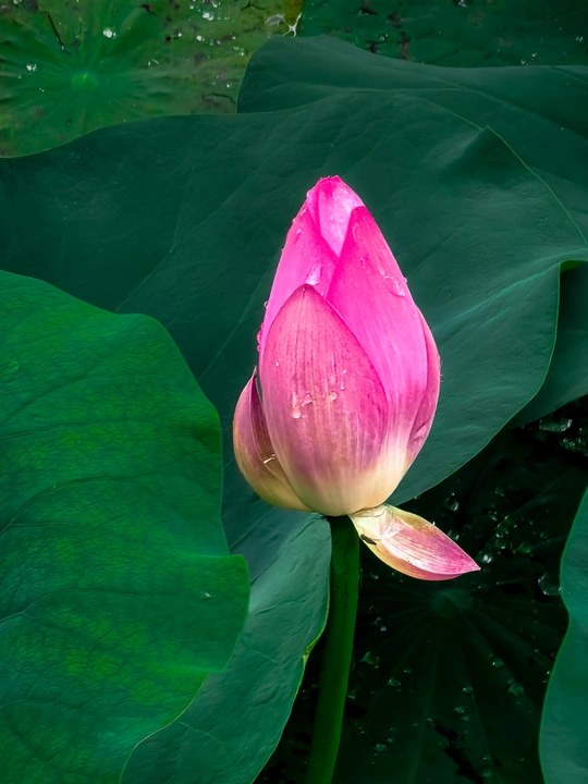 在济南大明湖景区,雨中的荷花分外娇艳欲滴,惹人怜爱。