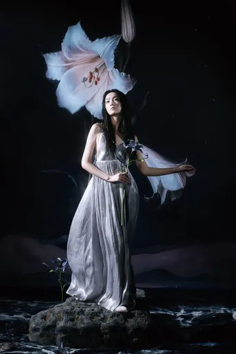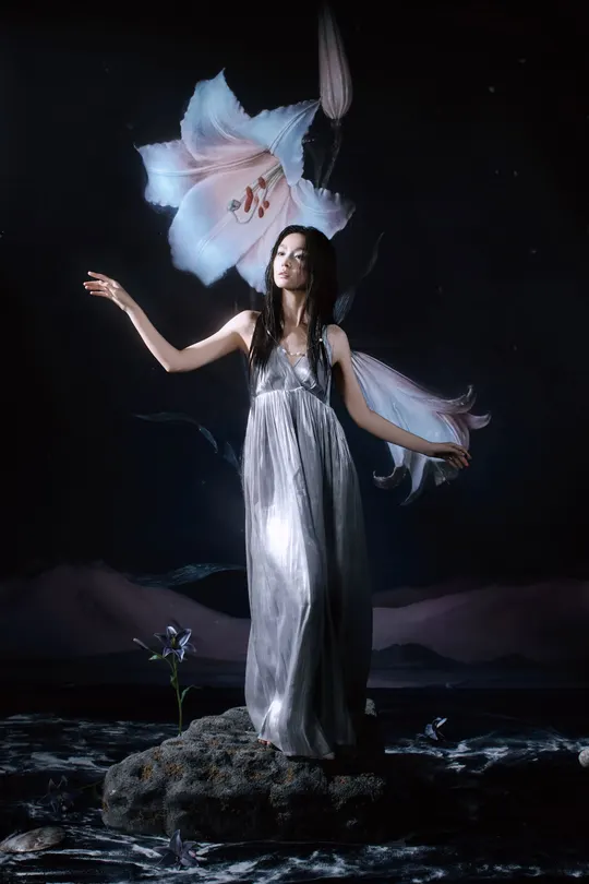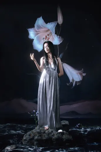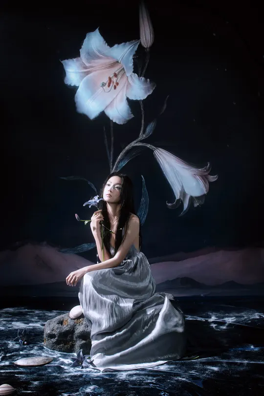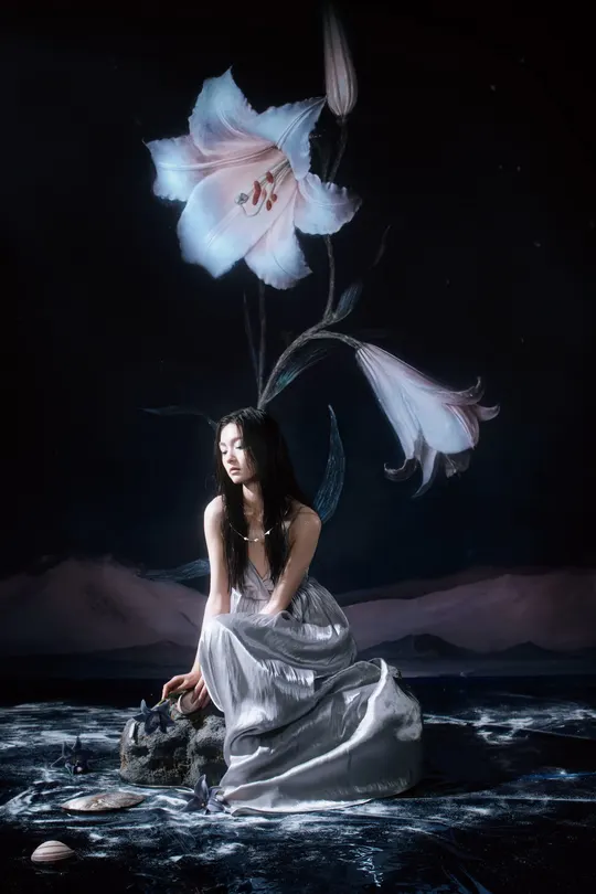 一朵花给的灵感 月光洒落在岛屿上,她是深海里出生的百合花