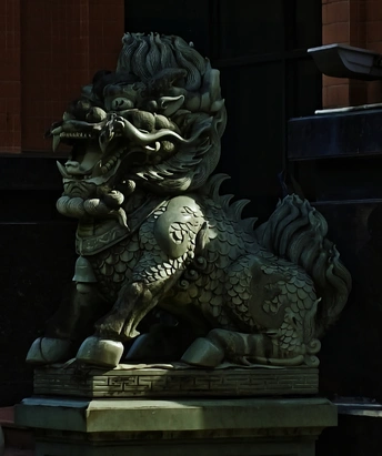 青石麒麟,静卧时光。龙首威凛,鳞甲藏光,往昔祥瑞之姿,仍镇一方气场,任岁月流转,守着亘古的吉意,在沉默里,续着东方神话的悠长 。