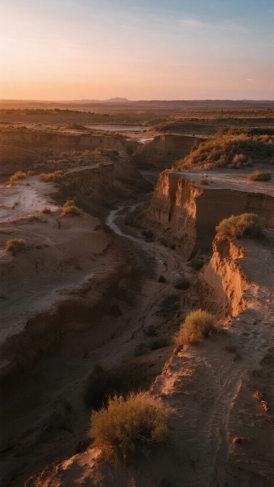 在这张照片中,色彩的运用整体和谐,夕阳的暖色调赋予了画面温暖和宁静的氛围。光影效果增强了地貌的层次感和立体感,尤其是右侧岩壁的光影对比。构图上,利用河流引导视线,增强了画面的纵深感,但略显居中,可以尝试使用三分法构图,将河流放置在画面的一侧。后期处理方面,整体色调略微偏暖,可以适当调整色温,使色彩更加自然。主题表达上,照片展现了荒凉大地的壮阔和静谧,具有一定的视觉冲击力。情感共鸣方面,能够引发观者对自然景观的敬畏之情。在思想深度上,可以进一步挖掘照片背后的文化或历史内涵,使其更具深度。建议尝试不同的构图方式,并注意后期色彩的微调,让作品更上一层楼! 情感共鸣:照片成功地传达了孤独和荒凉的情感,引起了观者的共鸣。