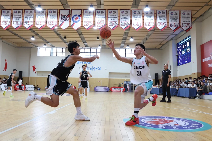 2025年6月25日,2024—2025康师傅喝开水中国初中篮球联赛四川赛区决赛在绵阳市实验中学体育馆落下帷幕。绵阳七中男子篮球队凭借出色的团队配合和顽强的拼搏精神,以显著优势战胜成都同安中学,成功夺得四川赛区冠军,并赢得参加全国大区赛的资格。