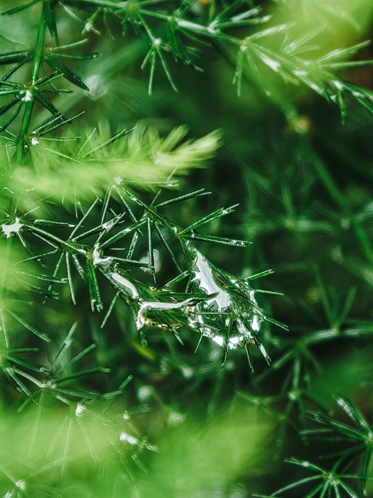 蕨叶轻展,串起晶莹水滴,在绿意里,把自然的温柔,悄悄藏进每缕脉络 。