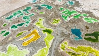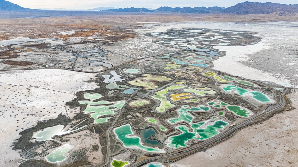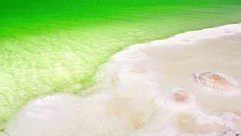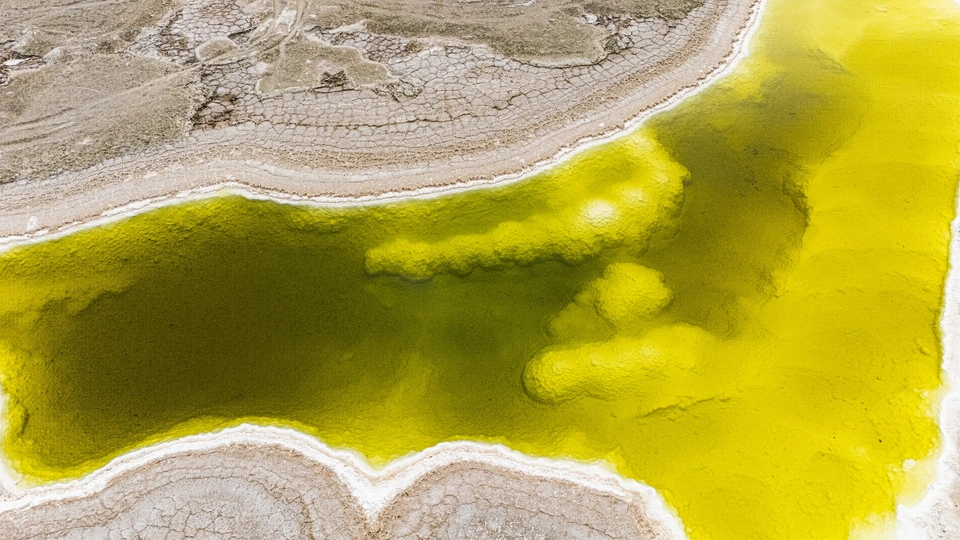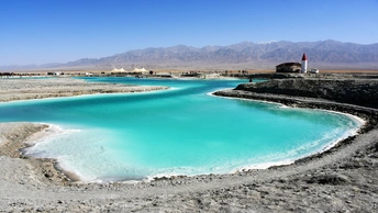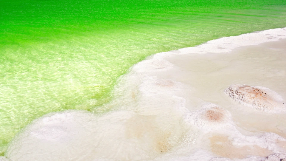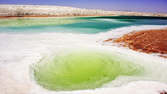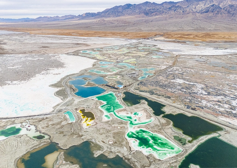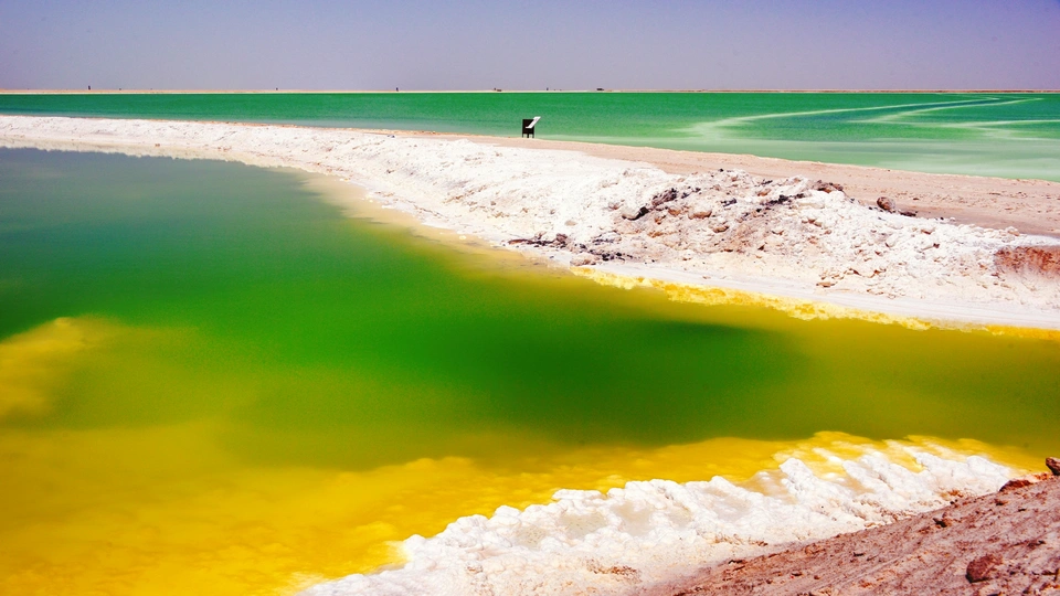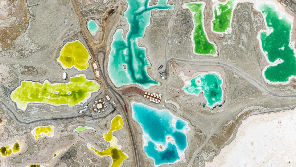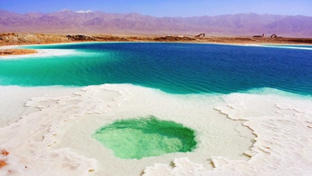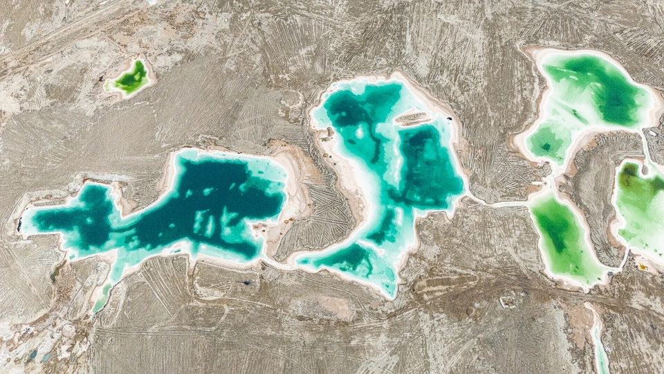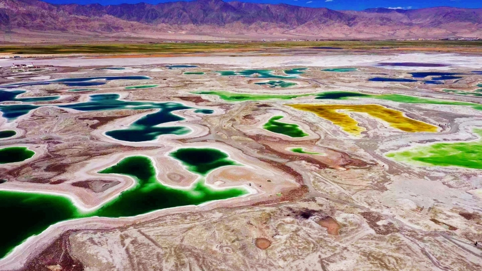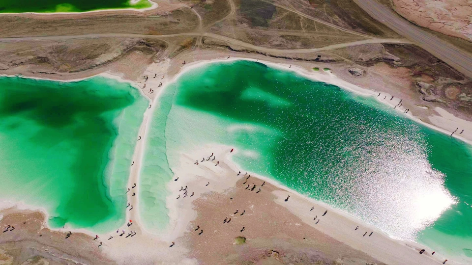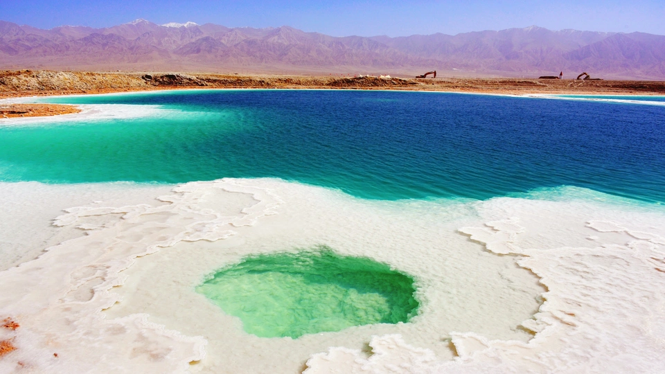 青海海西大柴旦翡翠湖 ,因含钾镁锂等金属元素和卤化物,盐湖呈现翡翠般色彩。