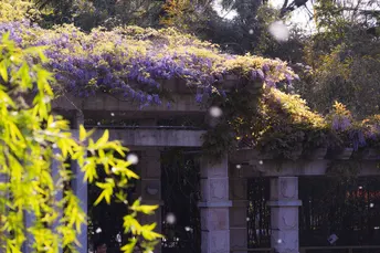 紫藤花在摇曳,柳絮在飞舞,有一种入梦的感觉。