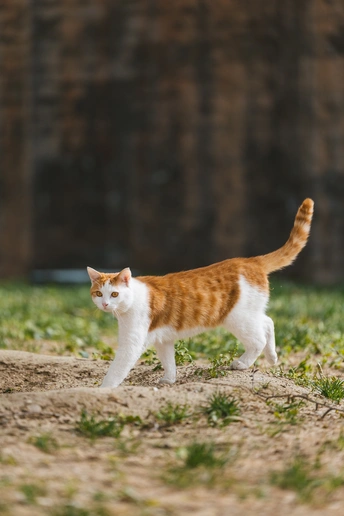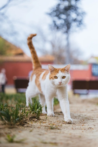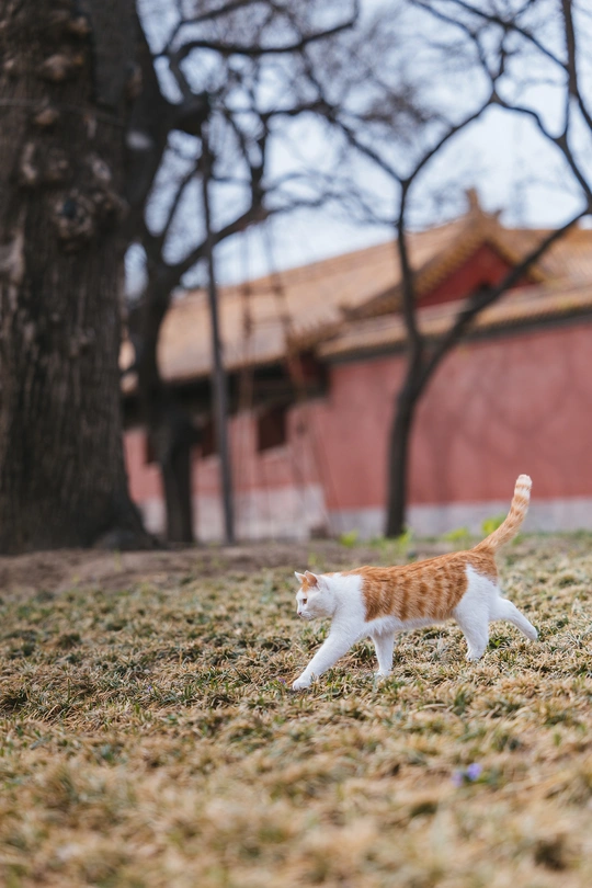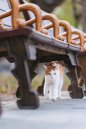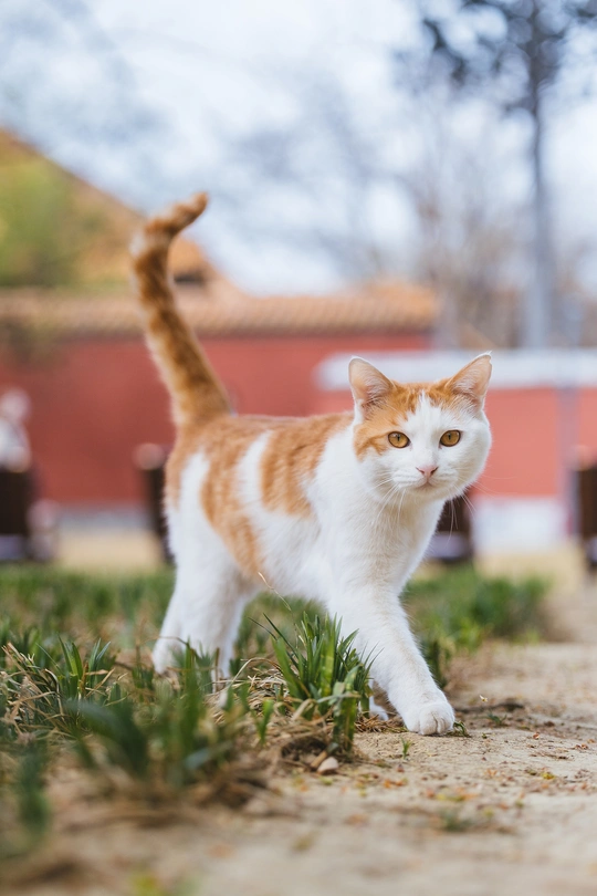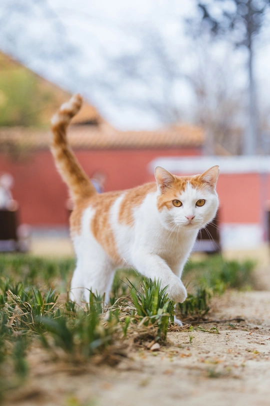 花花开启了“猫界模特步”,从草地走到长椅下,气场全开,连尾巴都骄傲地立起来了!