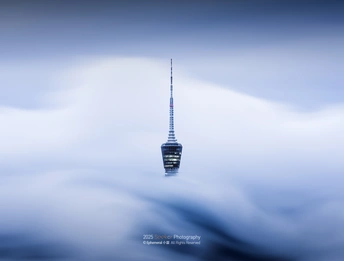 这幅深圳梧桐山电视塔云海照,尽显天地交融之妙。云雾如轻纱幔帐,轻柔簇拥着电视塔,塔尖刺破霭霭云浪,似欲直探苍穹。冷调的蓝白交织,营造出静谧而空灵的氛围,塔的硬朗与云的柔曼碰撞,是城市地标与自然神迹的诗意对话,在朦胧间勾勒出独属于鹏城的梦幻天际线,让观者于虚实缥缈中,领略建筑与自然共谱的浪漫乐章,沉浸式感受深圳这份遗世独立的壮美与清辉。