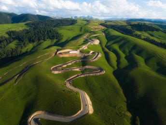 伊犁河谷进入最美的7月 夏牧场的草更绿了 云杉也显得更挺拔 蜿蜒的工具 蓝天白云下 宛若一条长龙盘踞在草原之上