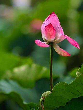 这张照片展现了一朵含苞待放的莲花,整体呈现出一种清新、淡雅的氛围。色彩方面,粉色的花瓣与绿色的背景形成了鲜明的对比,但色彩的饱和度略显不足,可以适当提高花瓣的饱和度,使其更加鲜艳夺目。光影方面,光线较为柔和,主体细节清晰,但缺少层次感,可以通过调整光线角度或后期增加对比度来改善。构图上,主体位于画面中央,较为稳妥,但略显呆板,建议尝试三分法构图,将主体置于画面一侧,留出更多的空间,增加画面的趣味性。后期处理方面,整体色调偏淡,可以适当调整曲线或色阶,增加画面的层次感和对比度,但要注意避免过度修饰。主题原创性方面,莲花题材较为常见,但能够捕捉到含苞待放的瞬间,也具有一定的独特性。情感共鸣方面,照片能够传达出一种清新、宁静的感觉,但略显平淡,可以通过调整色彩和光影来增强情感的表达。思想深度方面,照片主要展现了莲花的美丽形态,缺乏更深层次的内涵。总的来说,照片在色彩、光影和构图方面还有提升空间,建议多加练习,尝试不同的拍摄角度和后期处理技巧,以增强照片的表现力和感染力。拍摄时尝试寻找更有特点的光影效果,例如侧逆光,能够更好地勾勒出莲花的轮廓。