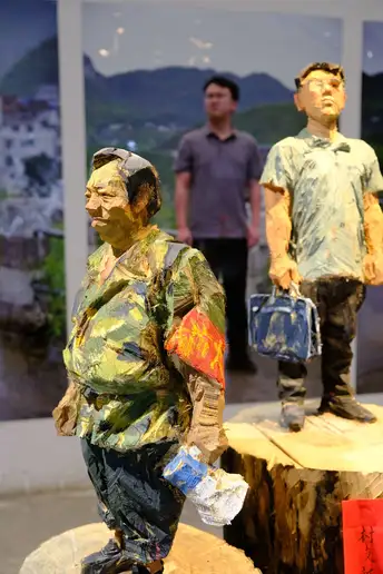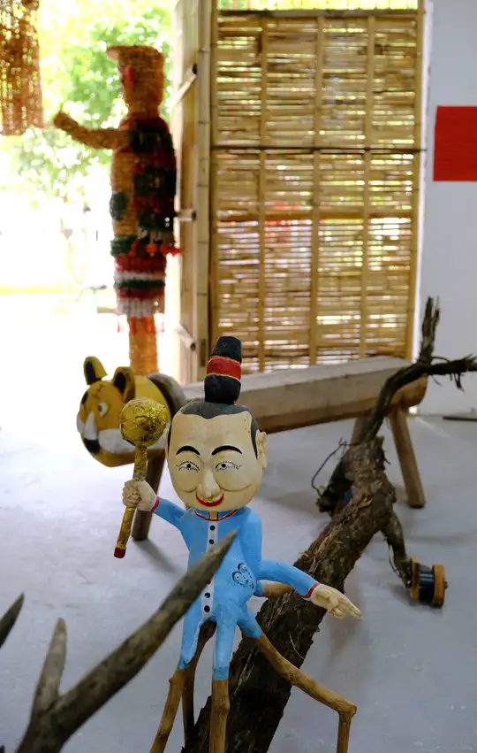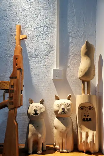 “土而奇”意味着“乡土而新奇”,是来自农耕文明绵延不绝的传统,通过专业艺术家和乡村艺术爱好者的合作协商,转化为充满想象力和生命力的创造,这组木雕作品体现了创作者对生活的细致观察,传递出一种神秘而奇幻的乡土艺术氛围。