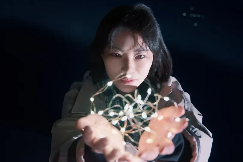 夜色如墨,她静坐于暗蓝背景前,发丝在静谧中轻扬。手中那束微光,像极了孤独里倔强的希望,蓝调的氛围漫开,是失落与期许交织,在这暗夜里,独自捧着星芒,把心事说给沉默的夜听 。