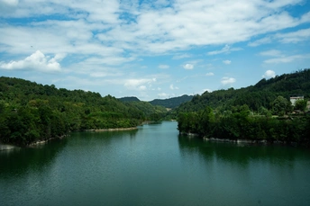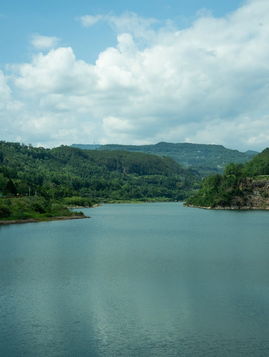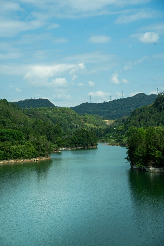 蓝天扯来云絮作笺,碧波蘸着山影写诗。 粼粼波光里,风抚过水面的褶皱,抖落满湖细碎的星;葱郁青山间,树影婆娑成歌,把夏的蓬勃悄悄藏进每片叶尖。 静泊的游船、横跨的桥,是人间烟火探进自然的温柔触角;远处层峦叠嶂,将天地晕染成水墨长卷。
