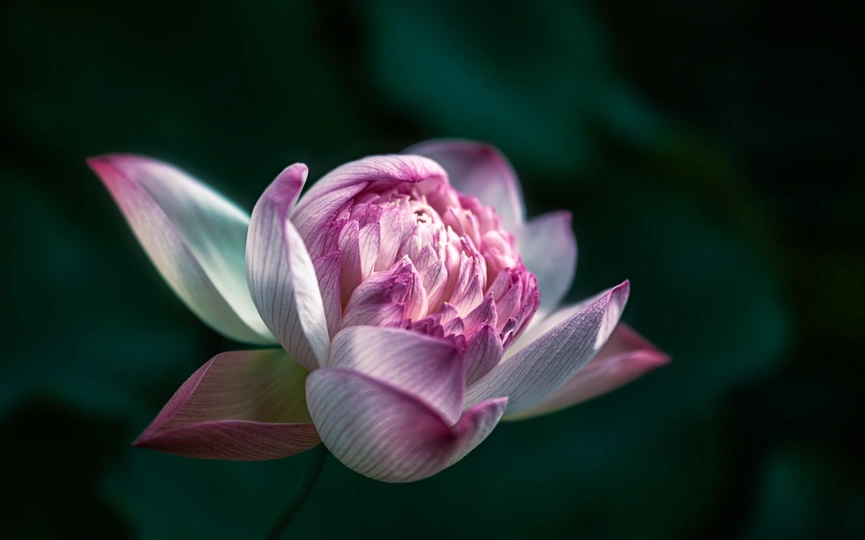 《粉荷缘》~ 满池荷叶田田,而我独爱这一朵初绽的荷花。它半掩着身姿,似藏着无尽的娇羞与温柔,粉白花瓣晕染开淡淡的紫,在绿意氤氲间,静静诉说着夏日的诗意与浪漫。本片拍摄于四川省江油市李白纪念馆内。