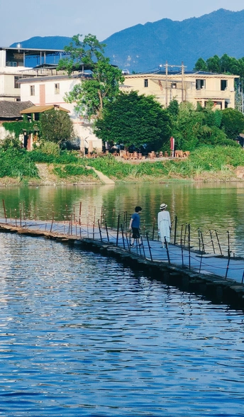 小暑,走上浮桥,微波鳞鳞,阵阵凉风闯入胸怀。漓江,桂林的空调。